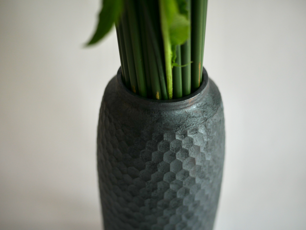 (※写真をクリックすると拡大します。) 長野県上田市で作陶している阿部春弥さんの花器です。 ※いけてあります花材は付属いたしません。 サイズ:直径105mm、高さ270mm