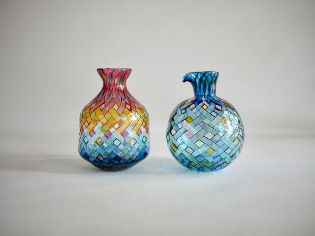長野県で制作している林あゆみさんの作品です。 品番:2-2 (※写真をクリックすると拡大します。) 1.青空 サイズ:最大径90mm、高さ113mm 2.マジックアワー サイズ:最大径82mm、高さ117mm