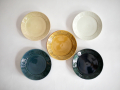 長野で作陶している阿部春弥さんの5寸皿です。 サイズ:直径150mm、高さ28mm ※それぞれ若干のサイズや、風合い、発色の仕方などが異なります。 (※写真をクリックすると拡大します。) 1.白磁 2.瑠璃 3.黄磁 4.もえぎ 5.淡瑠璃