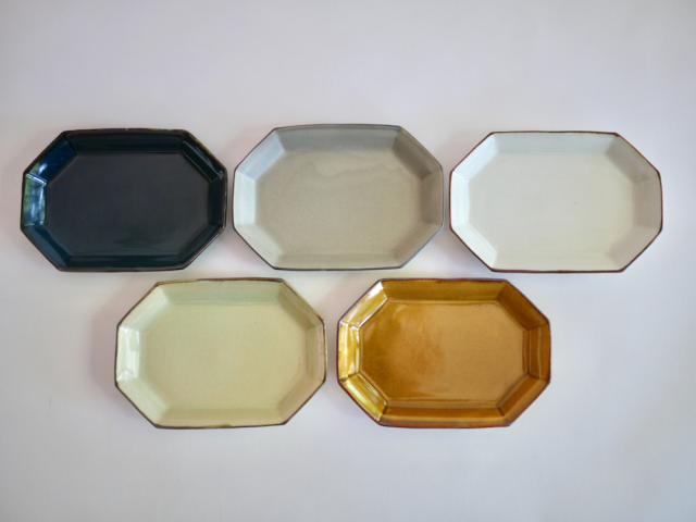 長野県上田市で作陶している阿部春弥さんの作品です。 品番:2-10 サイズ:幅170mm、奥行115mm、高さ23mm ※それぞれ若干のサイズや、風合い、発色の仕方などが異なります。 (※写真をクリックすると拡大します。) 1.白磁 2.グレー 3.瑠璃 4.黄磁 5.もえぎ